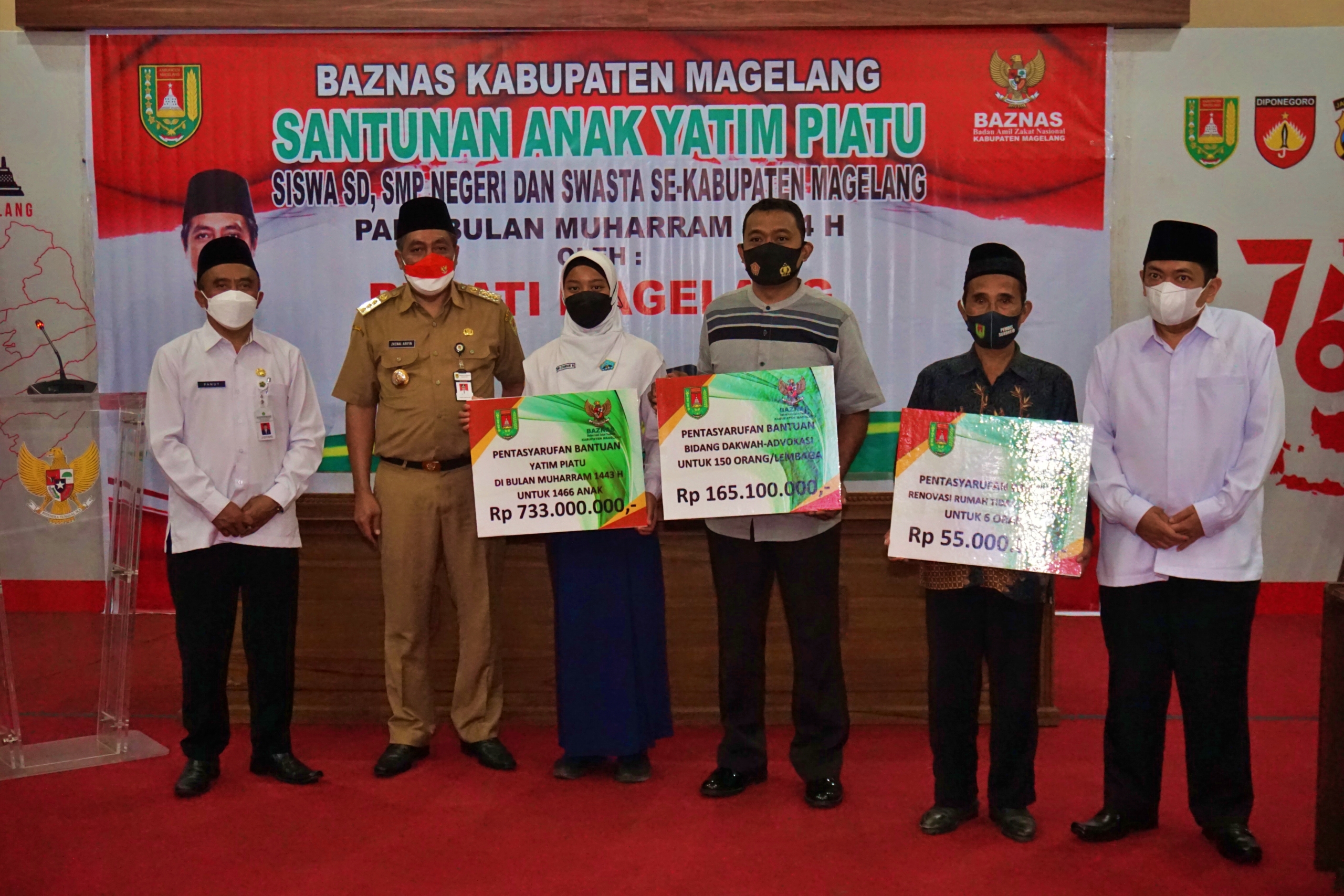 BNews–MAGELANG-– Sebanyak 1466 anak yatim piatu di Kabupaten Magelang menerima santunan dari Pemkab. Penyerahan bantuan melalui Badan Amil Zakat Nasional (Baznas) dalam rangka Bulan Muharram 1444H.