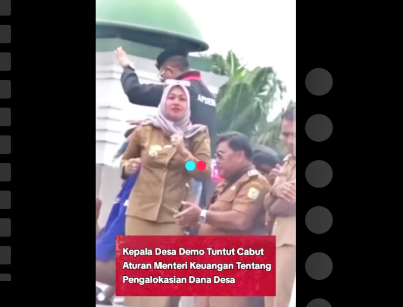 “Kepala Desa Demo Tuntut Cabut Aturan Menteri Keuangan Tentang Pengalokasian Dana Desa. Para pengunjuk rasa meminta Presiden Prabowo Subianto mencabut sejumlah aturan, terutama peraturan menteri keuangan (PMK) Nomor 81 tahun 2025 tentang Pengalokasian Dana Desa, penggunaan dan penyaluran dana desa tahun anggaran 2025,” demikian narasi dalam akun TikTok @suararakyat_45 dikutip (10/12/2025).