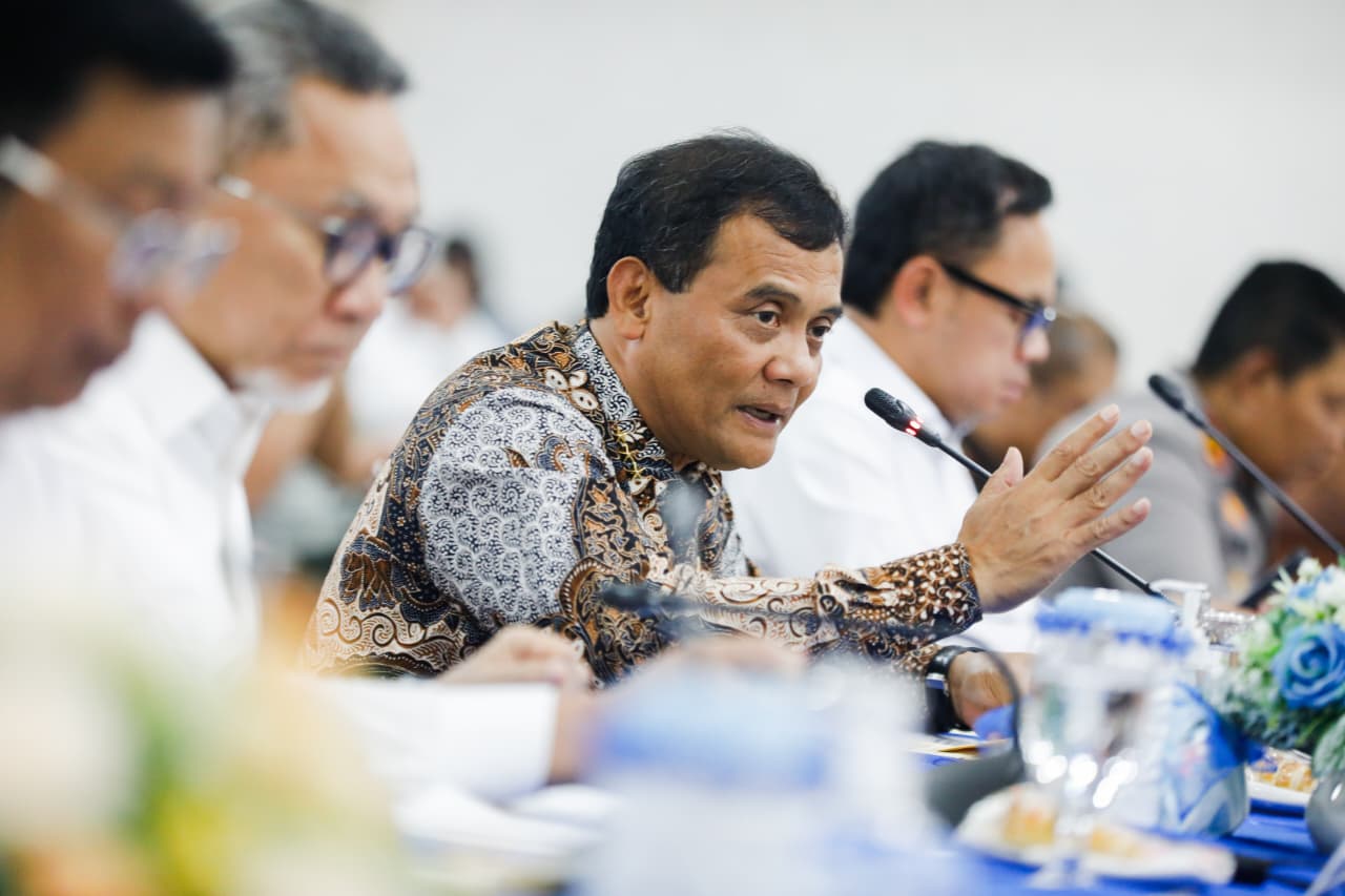 Gubernur Jateng Ahmad Luthfi saat acara Rakor Satgas Nasional, Satgas Provinsi, dan Satgas Kabupaten/Kota Provinsi Jawa Tengah Percepatan Operasionalisasi Koperasi Desa/Kelurahan Merah Putih yang dipimpin oleh Menko Bidang Pangan Zulkifli Hasan di Gedung Gradhika Bhakti Praja, Semarang pada Kamis (28/8/2025).