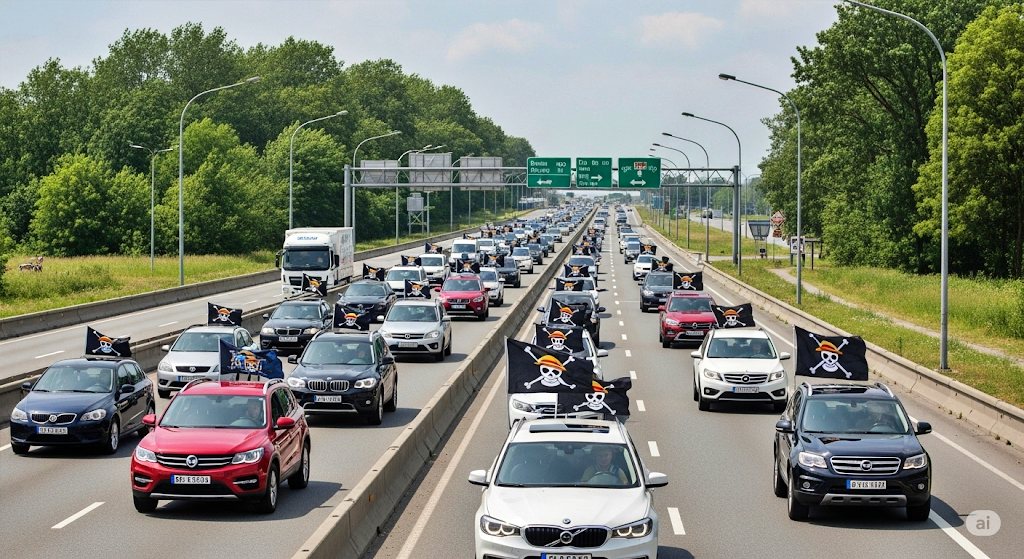 Ilustrasi kendaraan memasang bendera one piece jelang HUT Kemerdekaan RI ke 80