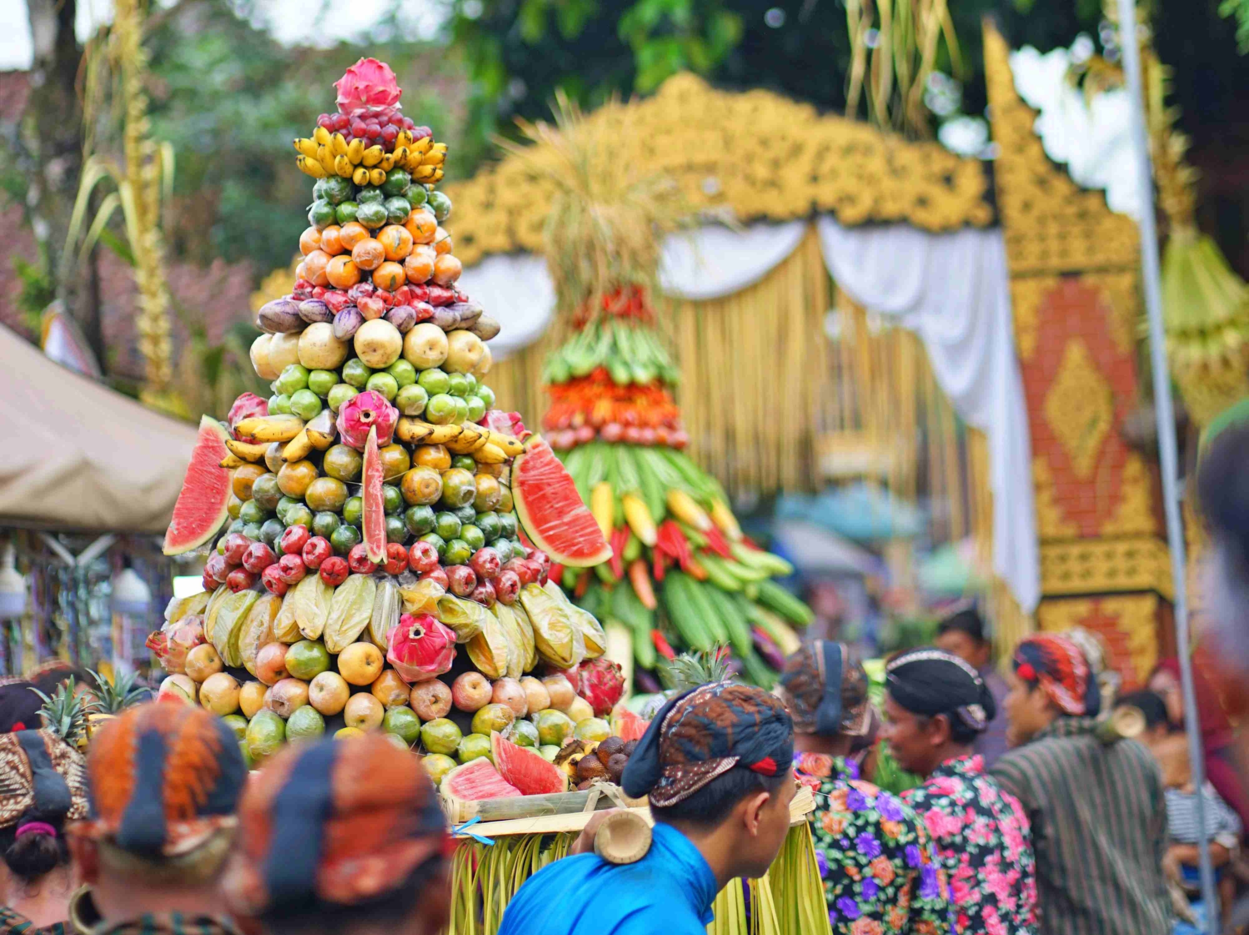 Gunungan tersebut berisi hasil bumi yang disusun menyerupai tumpukan raksasa dan menjadi simbol kemakmuran serta rasa syukur masyarakat.