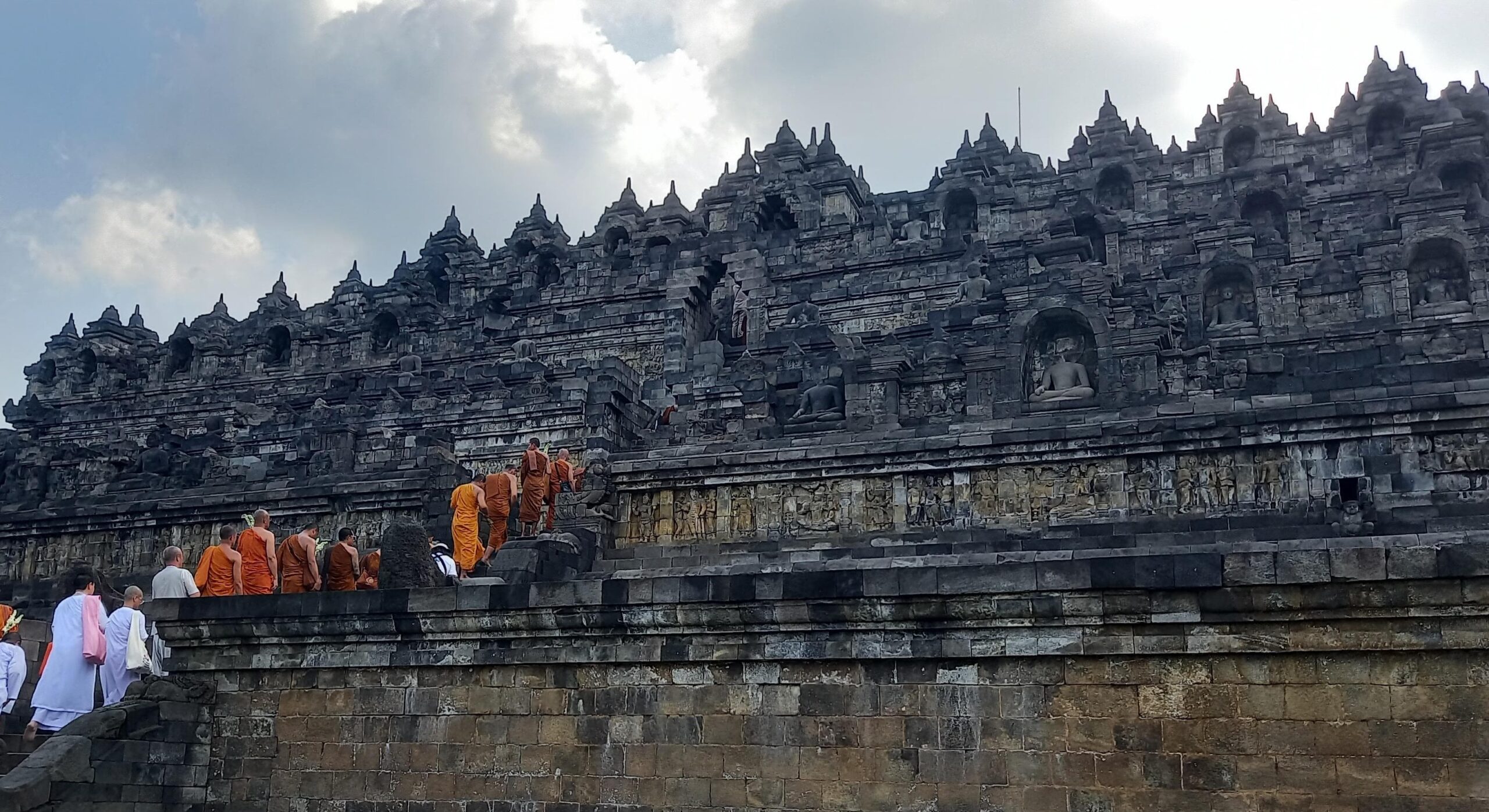 BNews–MAGELANG– Puluhan Biksu yang menjalani ritual Thudong telah tiba di Candi Borobudur pada Senin (20/5/2024) sekira pukul 13.53 WIB. Mereka mulai jalan dari Semarang pada Kamis (16/5/2024) lalu.