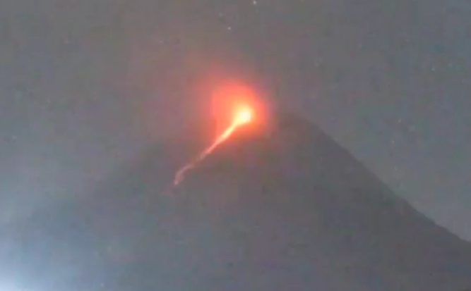TERANG: Gunung Merapi memuntahkan lava pijar pada Kamis (12/8) dini hari. (foto: ist)