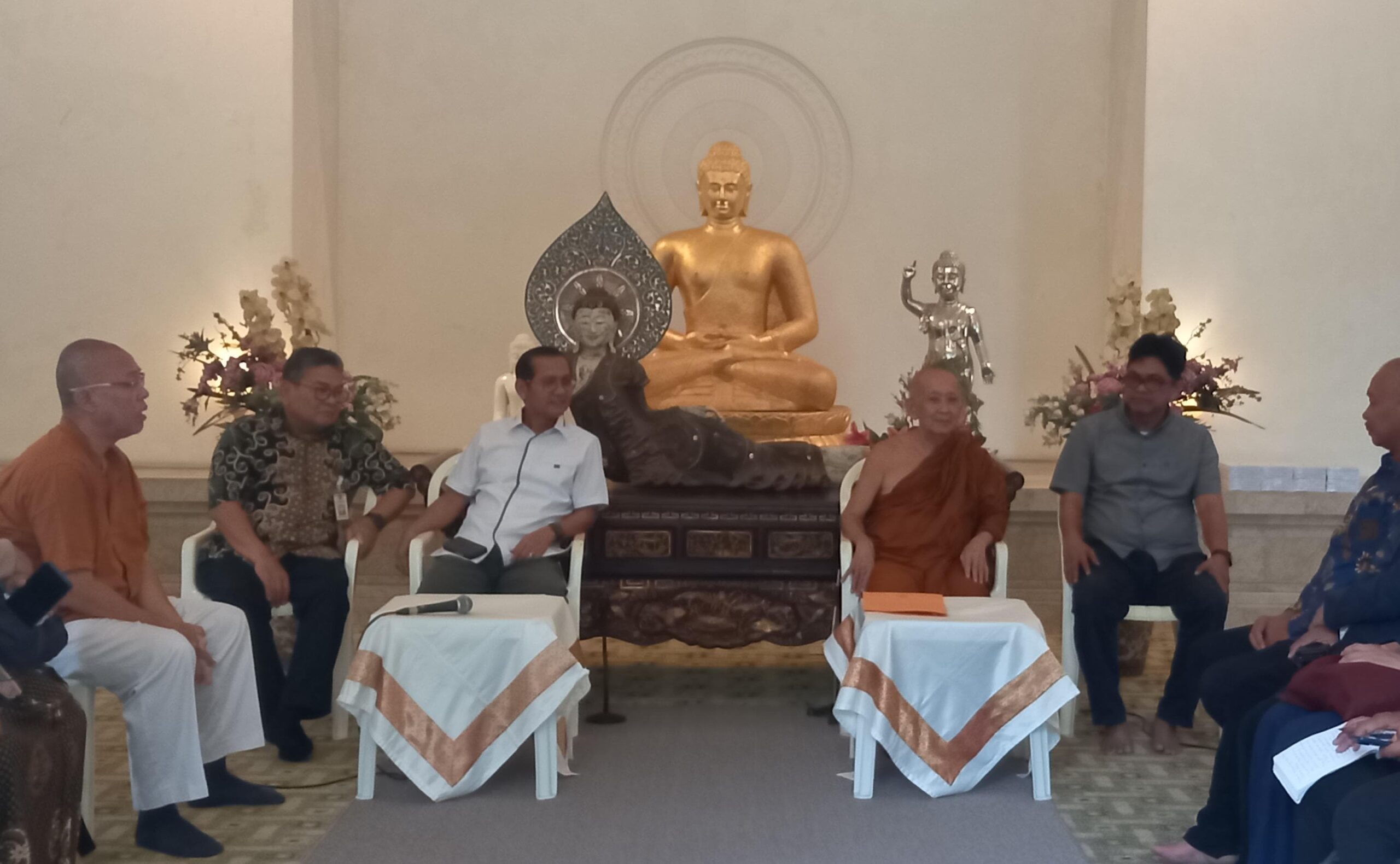 sejumlah pakar dan tim peneliti bertemu dengan tokoh Agama Buddha, Bhante Pannavaro Mahathera di Vihara Mendut, Kecamatan Mungkid, Kabupaten Magelang, Rabu (20/3/2024).