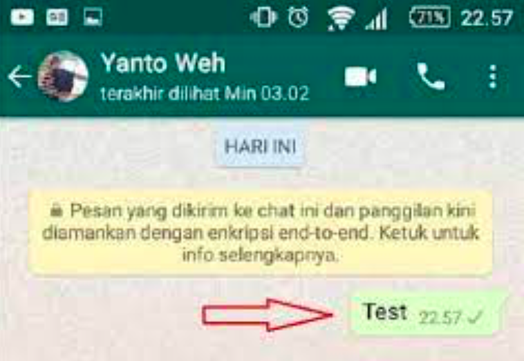 Langak ketiga, coba mengirim pesan ke kontak yang dicurigai telah memblokir Kamu di WhatsApp. Pesan akan selalu menampilkan tanda satu centang dan tidak pernah menampilkan tanda centang kedua (pesan yang dikirimkan) bahkan setelah berhari-hari.