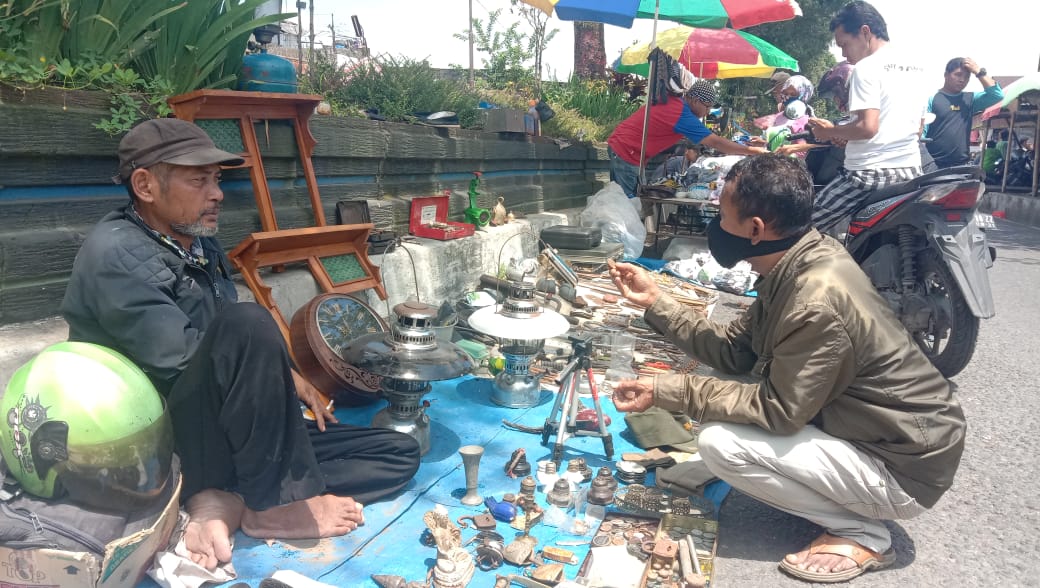 NEWS: Transaksi jual beli barang antik di Pasar Kliwon Muntilan dilakukan masyarakat di tengah wabah corona (15/4/2020)-(Foto: Istimewa)