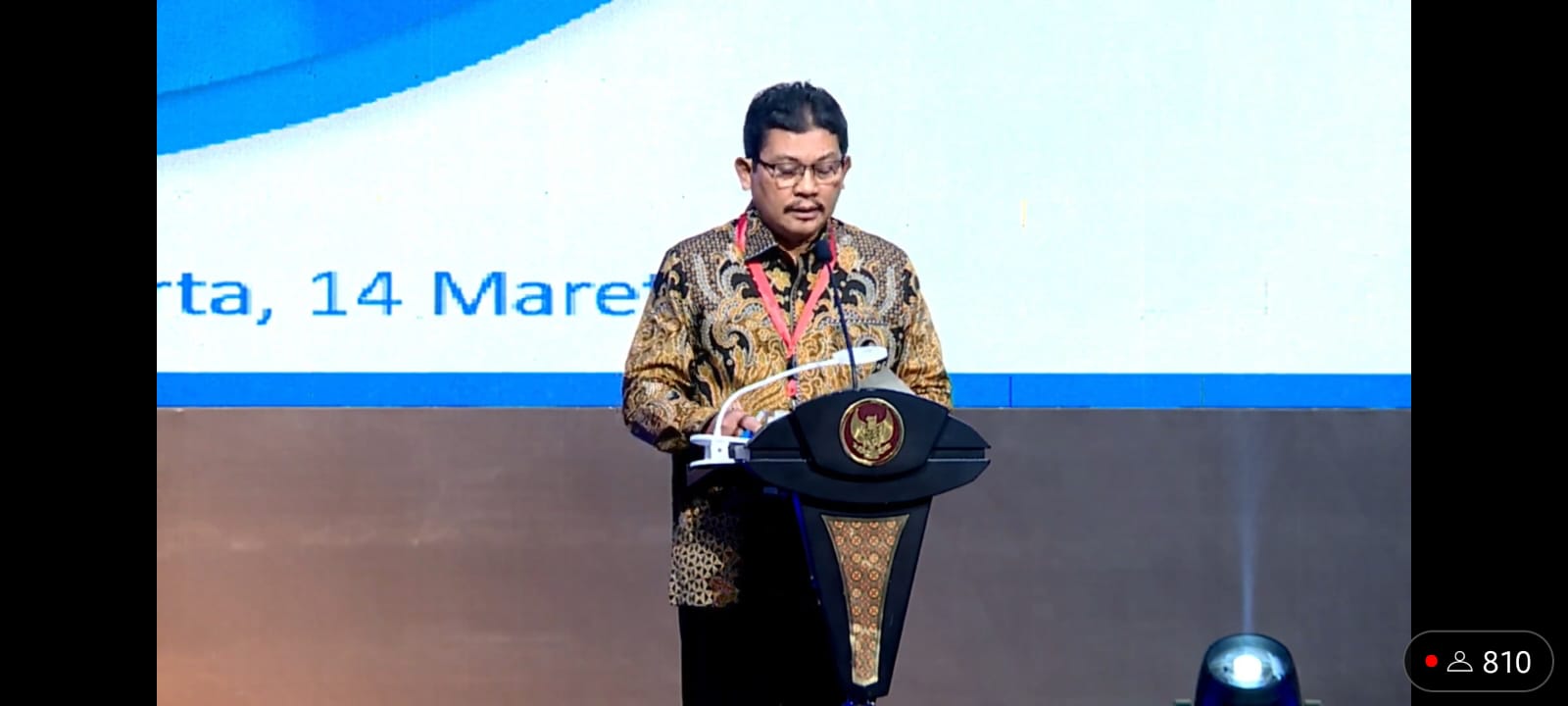 Direktur Utama BPJS Kesehatan Ali Ghufron Mukti pada Penyerahan Penghargaan UHC kepada Pemerintah Daerah (Pemda), Selasa (14/3/2023). (tangkapan layar)
