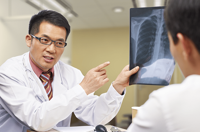 PARU: Dokter menerangkan gambar hasil rontgen paru-paru kepada pasien. (Foto: internet)