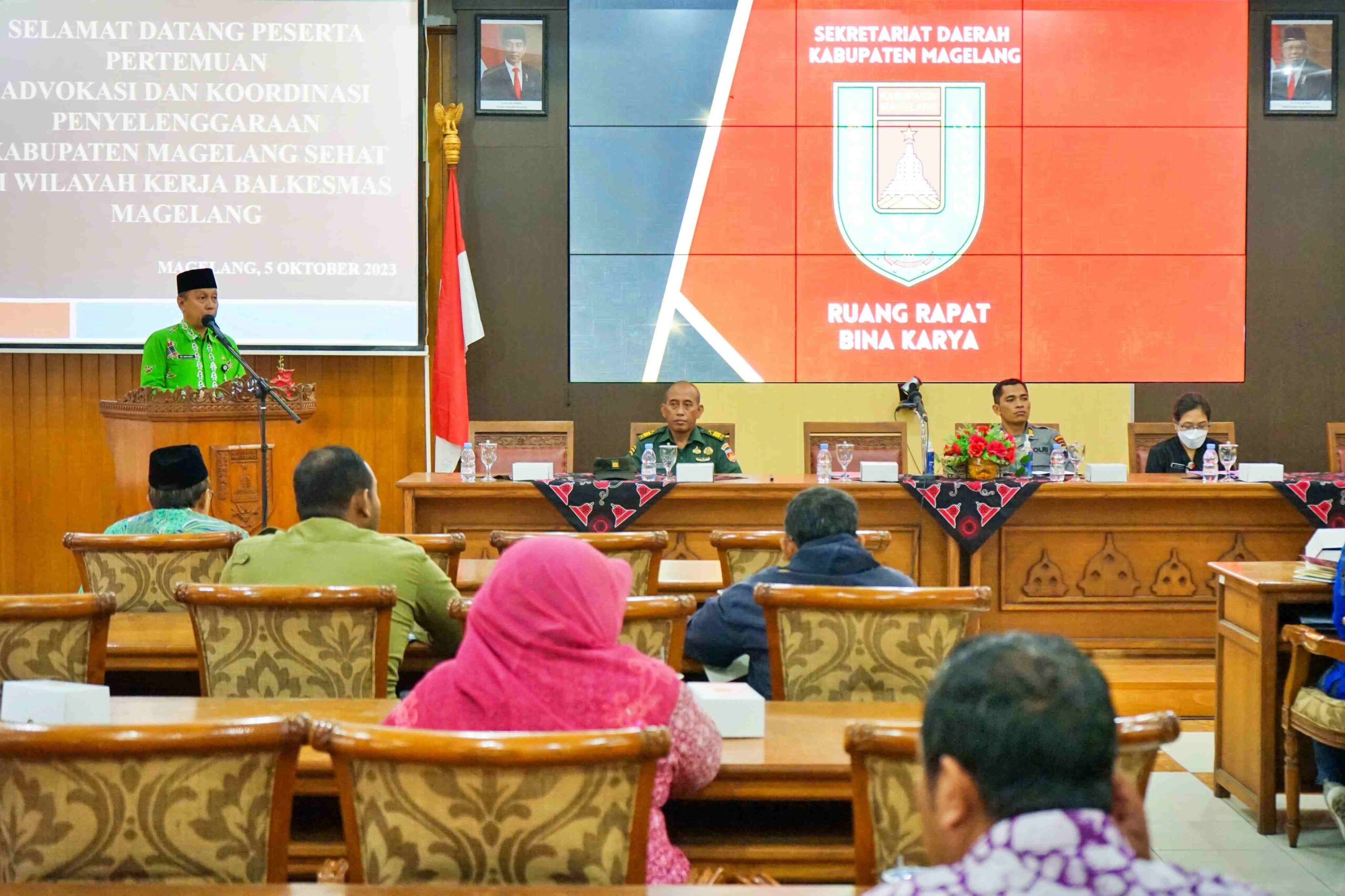 BNews-MAGELANG– Sekretaris Daerah Kabupaten Magelang, Adi Waryanto, bersama Kepala Balkesmas Provinsi Jawa Tengah Wilayah Magelang, Retno Mratihatani, dan Jajaran Forkompimda Kabupaten Magelang telah mengadakan Pertemuan Advokasi dan Koordinasi Penyelenggaraan Kabupaten Sehat di Ruang Bhina Karya, Lingkup Setda Kabupaten Magelang, pada Kamis (5/10/2023).