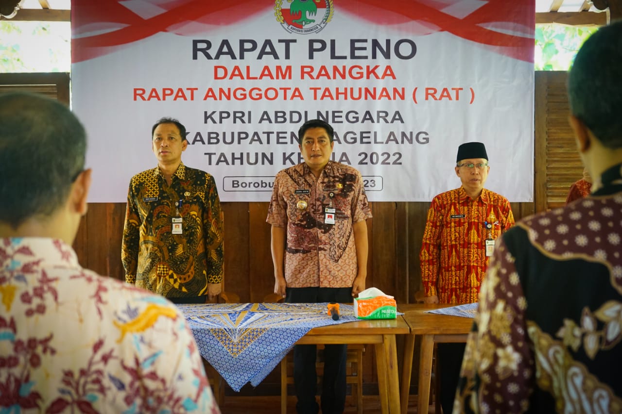 BNews–MAGELANG-– Rapat Pleno dalam rangka Rapat Anggota Tahunan (RAT) KPRI Abdi Negara Kabupaten Magelang Tahun Kerja 2022 digelar (9/3/2023). Berlokasi di Joglo Panglipuran Desa Wanurejo, Kecamatan Borobudur turut hadir Bupati Magelang Zaenal Arifin.