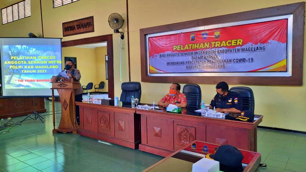 BNews–MAGELANG– Sejumlah anggota Senkom Polri Kabupaten Magelang mengikuti Pelatihan Tracer oleh Polres Magelang kemarin (2/7/2021). Acara yang berlangsung di Gedung Bhayangkra tersebut dibuka oleh Waka Polres Magelang Kompol Aron Sebastian.