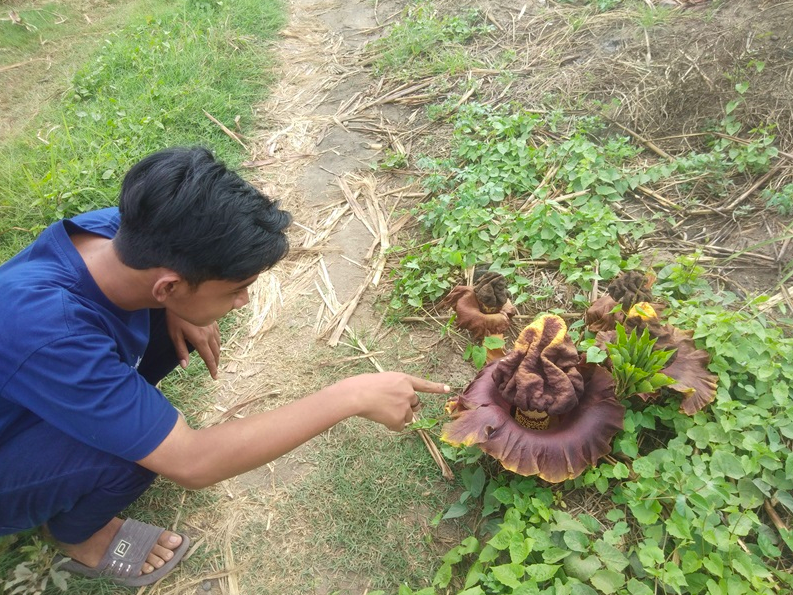 Toha pemilik kebun mengatakan bahwa bunga tersebut muncul sudah lebih dari seminggu. Dan pada hari Senin yang lalu bentuknya bagus dan tidak hanya satu tetapi ada lima bunga yang muncul bersamaan.