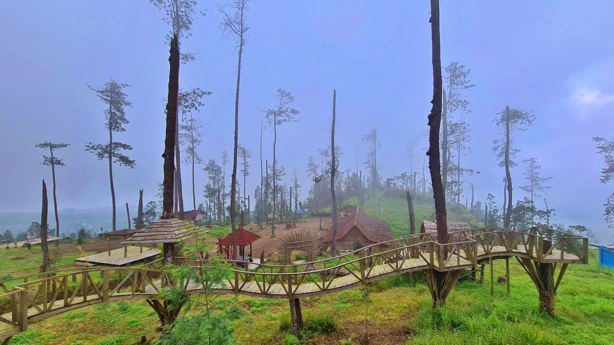 - Menara pohon, spot ini berada di pohon pinus dengan dua papan bersebelahan yang dapat digunakan sebagai pijakan dengan kota Magelang menjadi latar belakangnya.