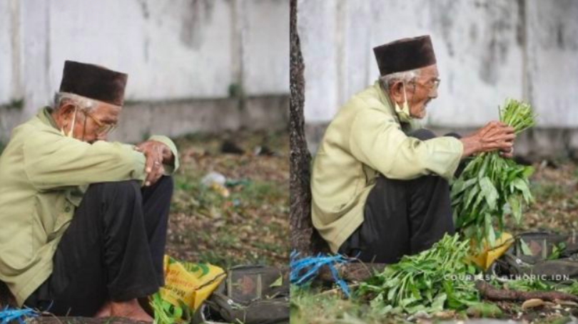 Berdasarkan keterangan yang dituliskan @thoric.idn, pria berusia 78 tahun tersebut setiap hari berjualan kangkung. Tepatnya di sekitar Alun-alun Kidul (Alkid) Solo.