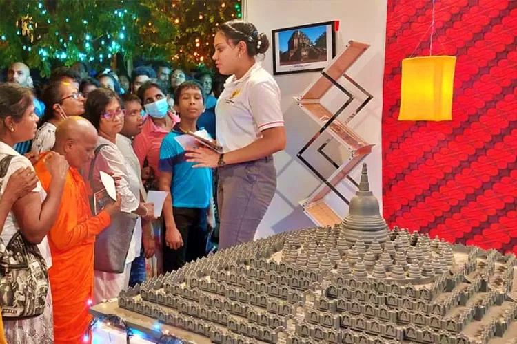 Stan Indonesia menyajikan miniatur dan video Candi Borobudur di perayaan Hari Raya Waisak di Sri Lanka yang menarik atensi para pengunjung.