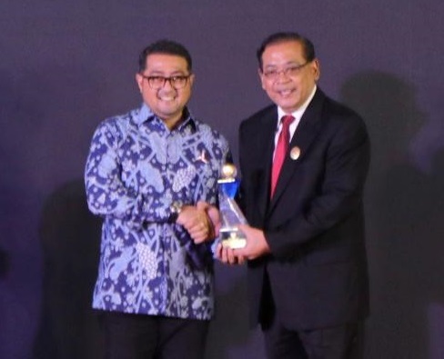 Ketua KIP-RI Donni Yusgiantoro menyerahkan penghargaan parpol ‘Informatif’ kepada Ketua Umum Partai Demokrat Agus Harimurti Yudhoyono (AHY) yang diwakili Sekjen Teuku Riefky Harsya di Atria Hotel, Gading Serpong, Tangerang (14/12). (foto: istimewa)