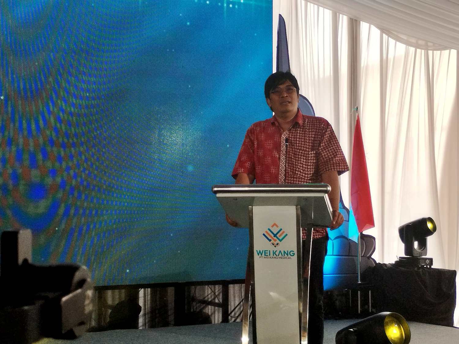 Direktur Utama PT Wei Kang Medical, Erick Romano saat memberikan sambutan