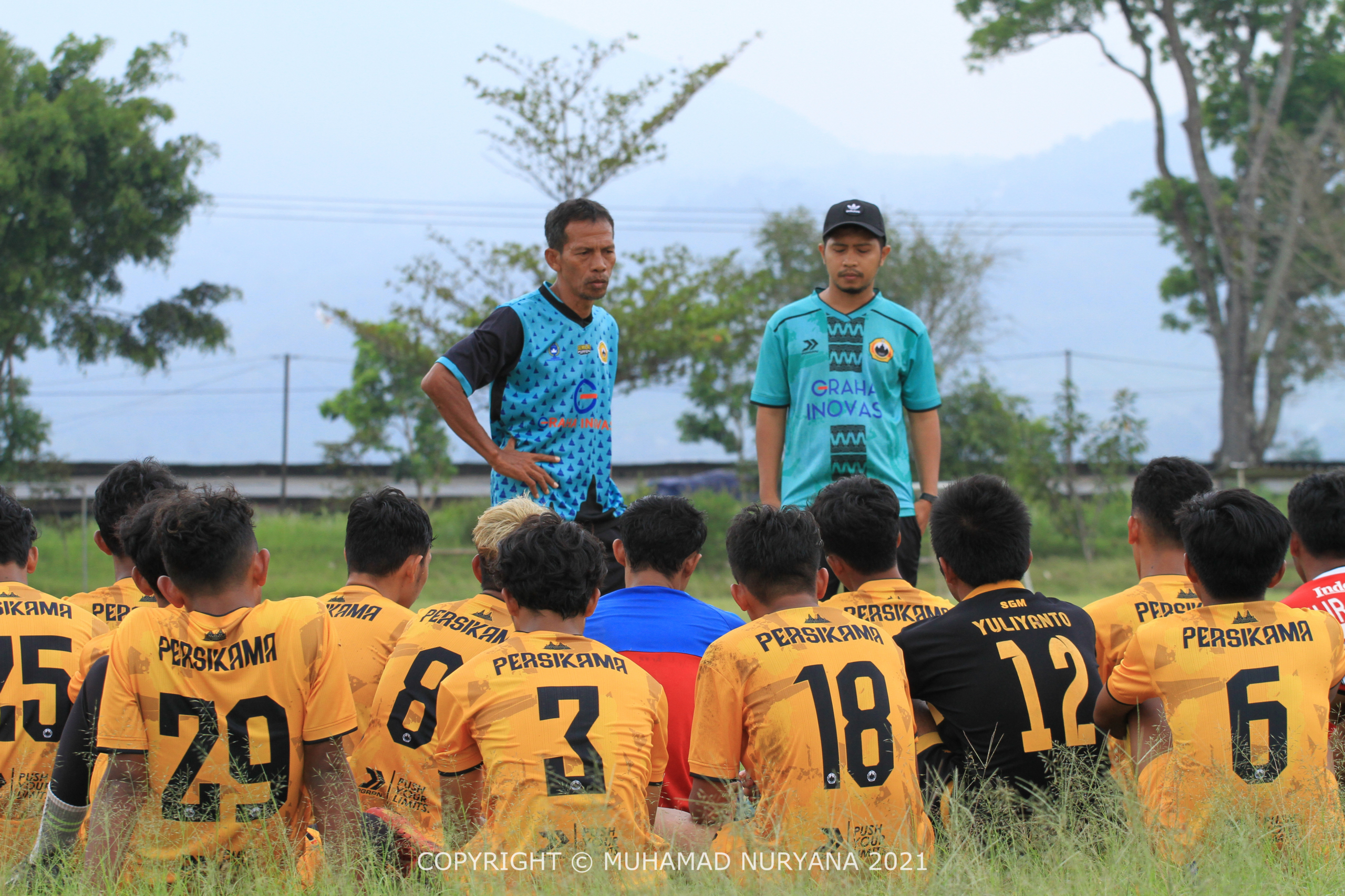 Pemain Persikama saat mendapat arahan pelatih (Foto: Muhamad Nuryana ; WAG Persikama)