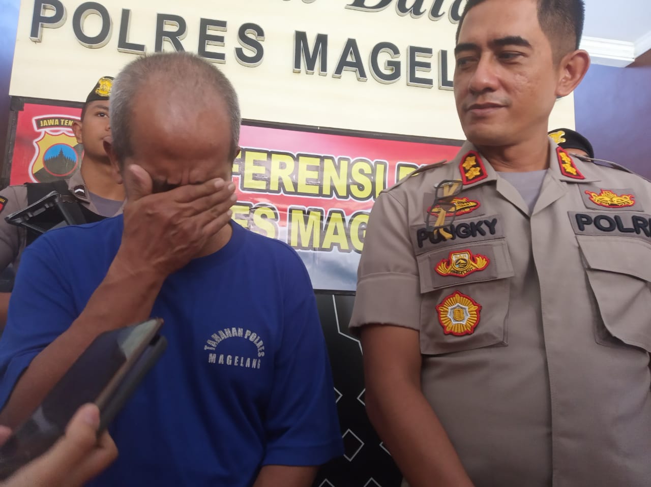 “Mendapat laporan tersebut, petugas melakukan penyelidikan lebih lanjut. Dan akhirnya pada hari Kamis, 09 Januari 2020 pelaku diamankan di rumahnya, dan dibawa ke Polsek Muntilan untuk dimintai keterangan awal dan pelaku mengakui semua perbuatannya,” ungkap Kapolres Magelang.