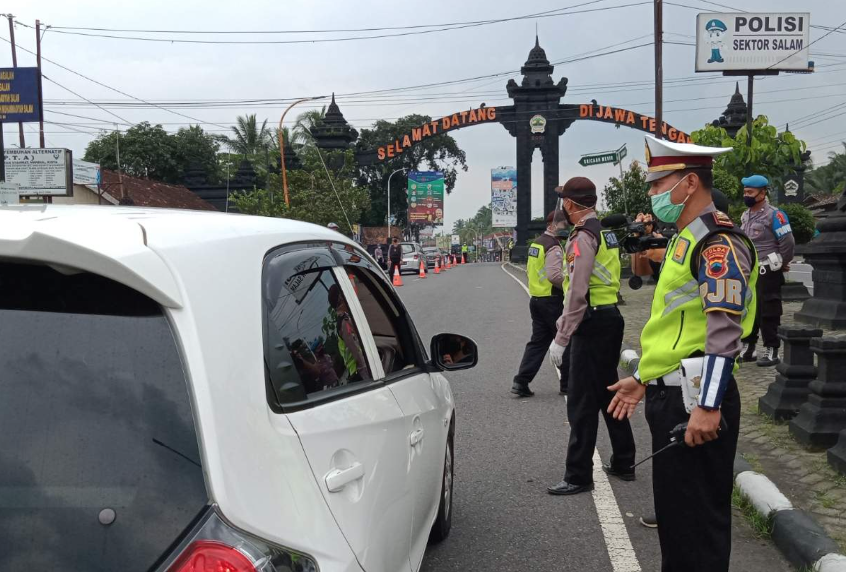 CEGAT: Polisi melakukan penyekatan kendaraan luar kota yang masuk ke Magelang. (foto: ist)