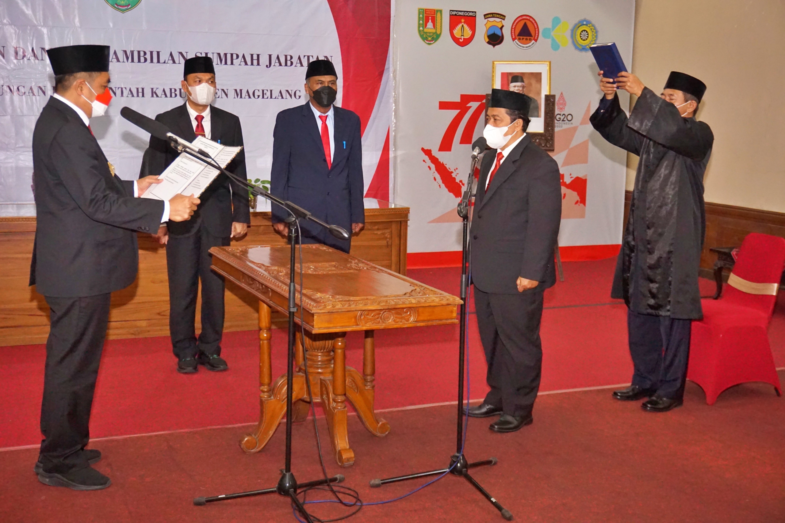 Pelantikan tersebut dilaksanakan di Rumah Dinas Bupati Magelang dan disaksikan oleh pejabat di lingkungan Pemerintah Kabupaten Magelang; melalui zoom meeting dari Ruang Command Center Pustaka Gemilang, Jumat (20/1/2023).