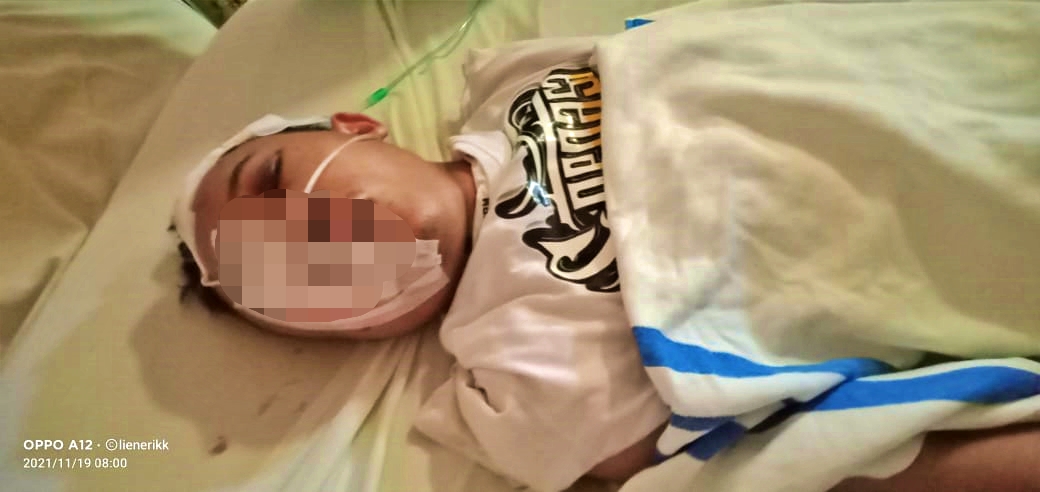 “Erik mendapat serangan dari orang yang tak dikenal di jalan. Pelaku melempar benda tumpul yang mengenai wajah nya. Diagnosa awal dari dokter adalah ckr Frakturma mandibula multiple vl,”