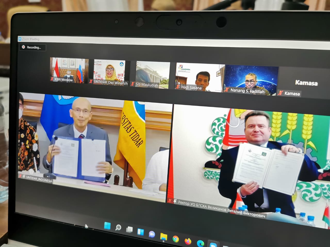 Untidar dan BSAA melaksanakan penandatanganan nota kesepahaman (Memorandum of Understanding) Senin, (24/1/2022) secara virtual. MoU ditandatangani oleh Rektor BSAA Dr. Vitali Velikanov dan Rektor Untidar Prof. Dr. Ir. Mukh. Arifin, M.Sc.