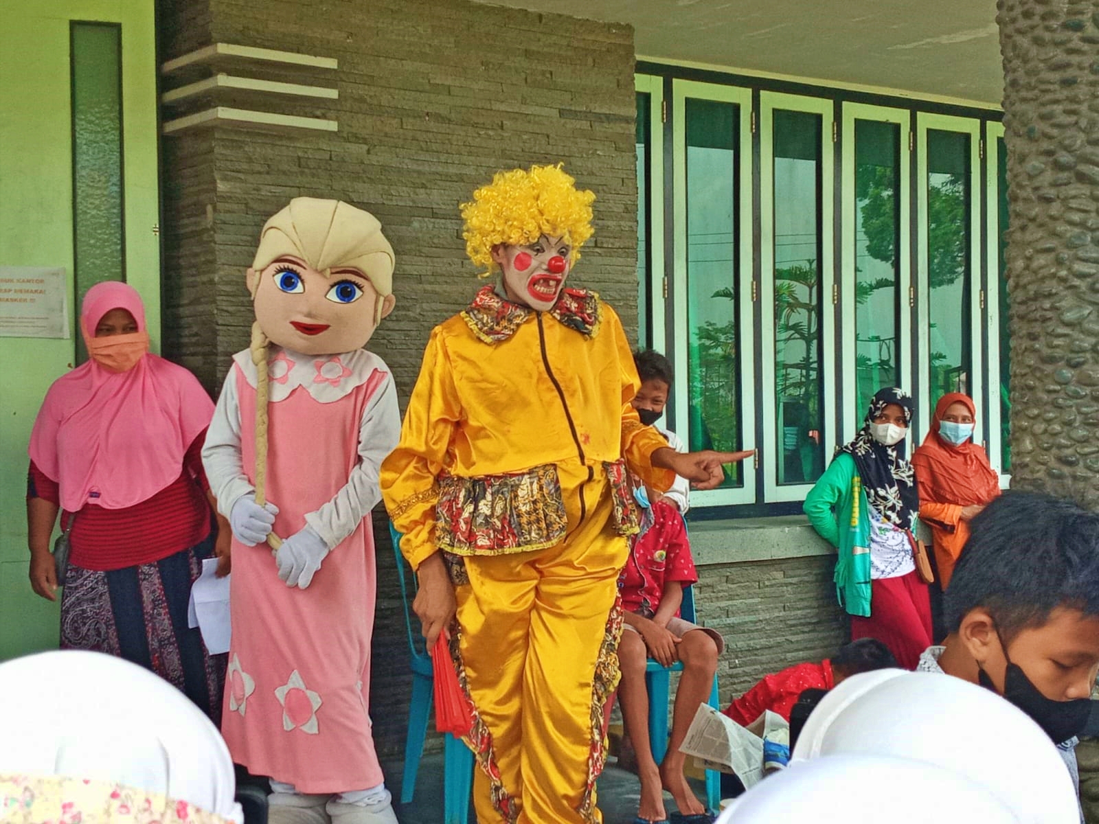 Badut lucu didatangkan Pemdes Gondowangi Sawangan Magelang saat vaksinasi anak