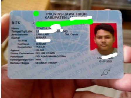 Nampak dalam foto KTP itu, data diri seperti nama belakang, tempat tanggal lahir, Nomor Induk Kependudukan (NIK) disembunyikan. Kendati demikian, masih nampak biasa saja.
