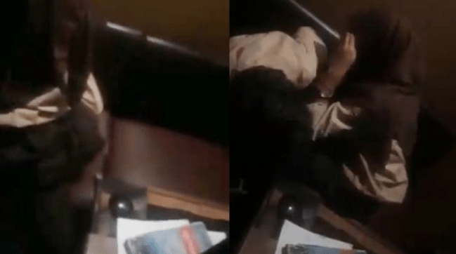 Di tengah aksinya, mereka tak sadar tengah direkam terang-terangan oleh seseorang. Terlihat pula sekilas di video, ada buku paket yang tergeletak di atas meja. Pria di balik kamera pun meminta mereka berhenti melakukan aksinya.